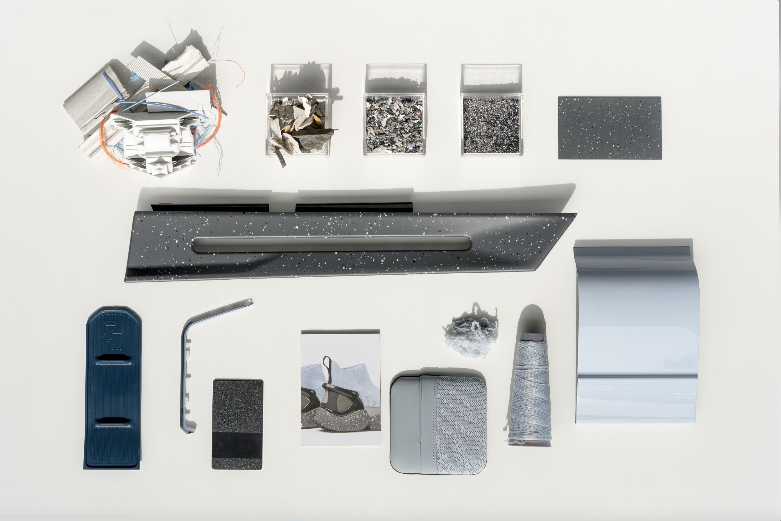 - Material Explorer shows EX30 samples, glowing under LEDs, with a calming Scandinavian soundscape.