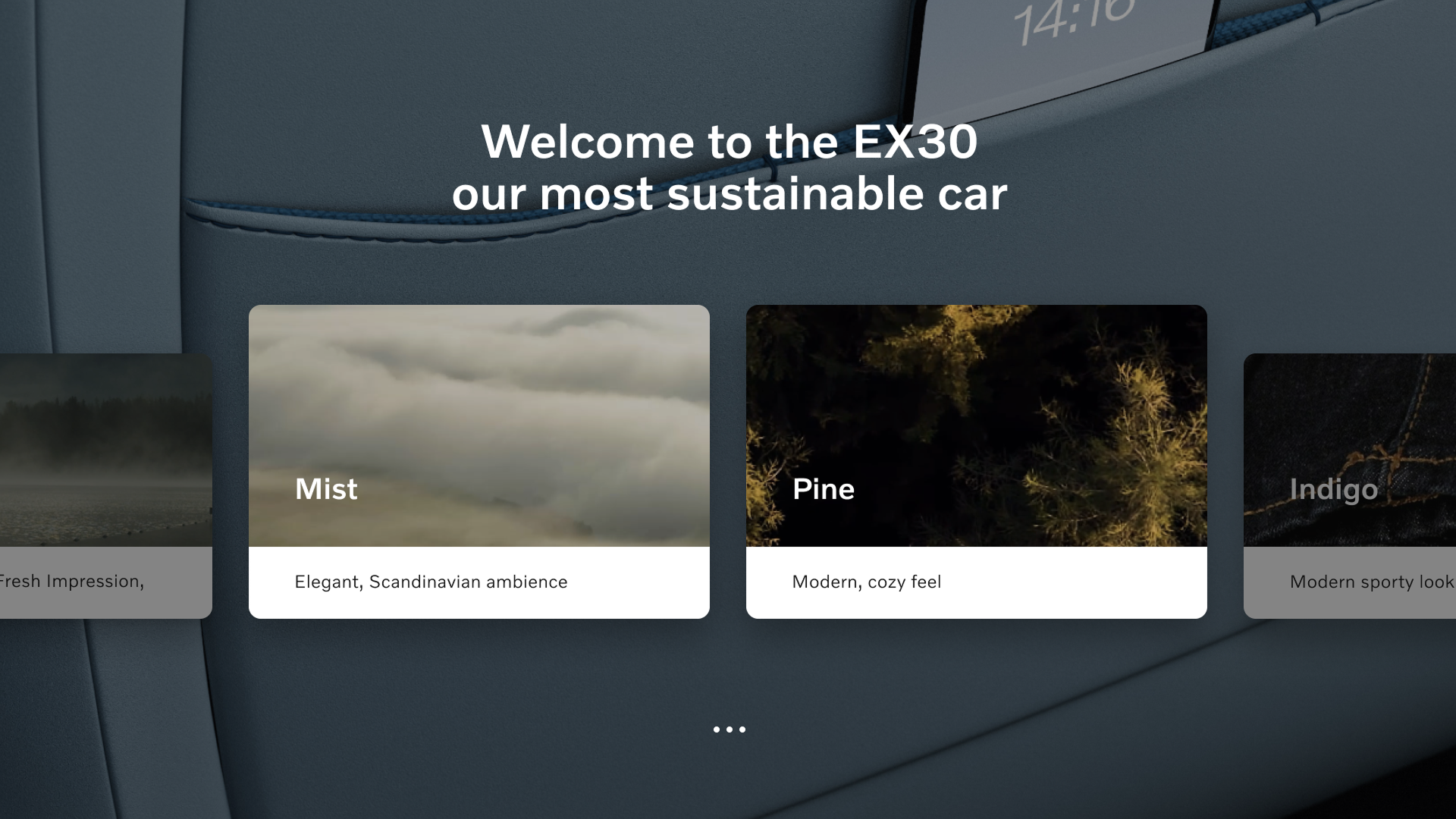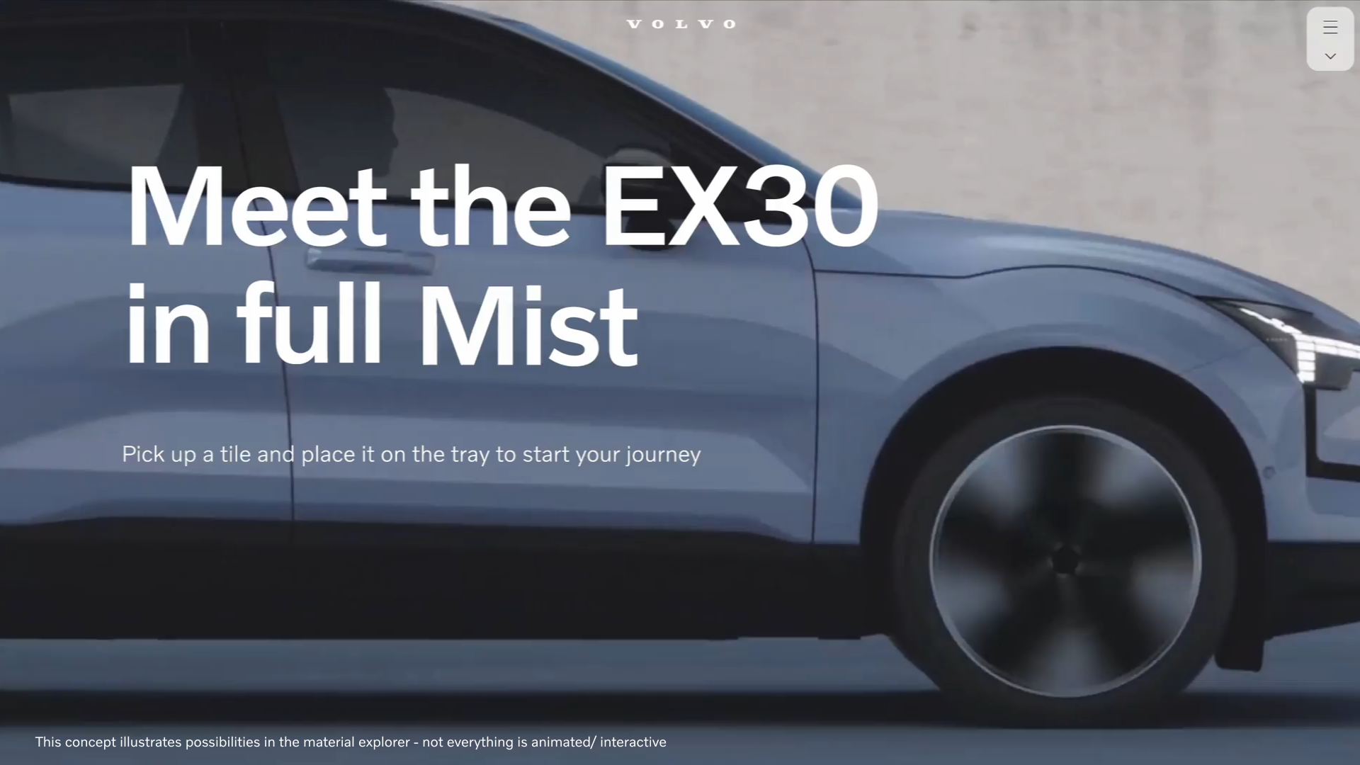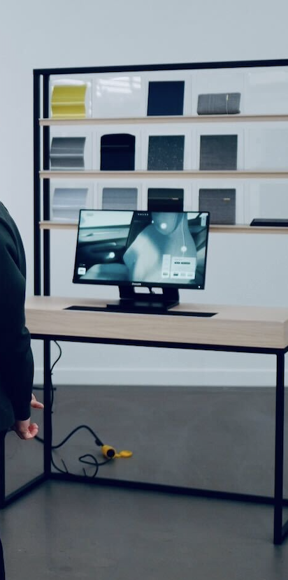 Material Explorer is a concept that aims to replace the current upholstery and sample walls in the Volvo showrooms. We created a phygital touchpoint that includes the physical assets and digital interface to bring the EX30 to life.